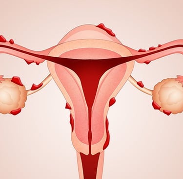 子宮内膜症は、子宮内膜細胞が子宮の外に移動して増殖する病気です。これらの細胞は、以下の場所にみられることがあります。