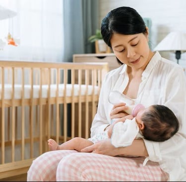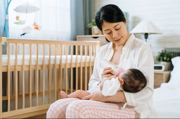 赤ちゃんが飲み始めたら、姿勢を整え、背筋を伸ばし、視線は前に向けましょう。